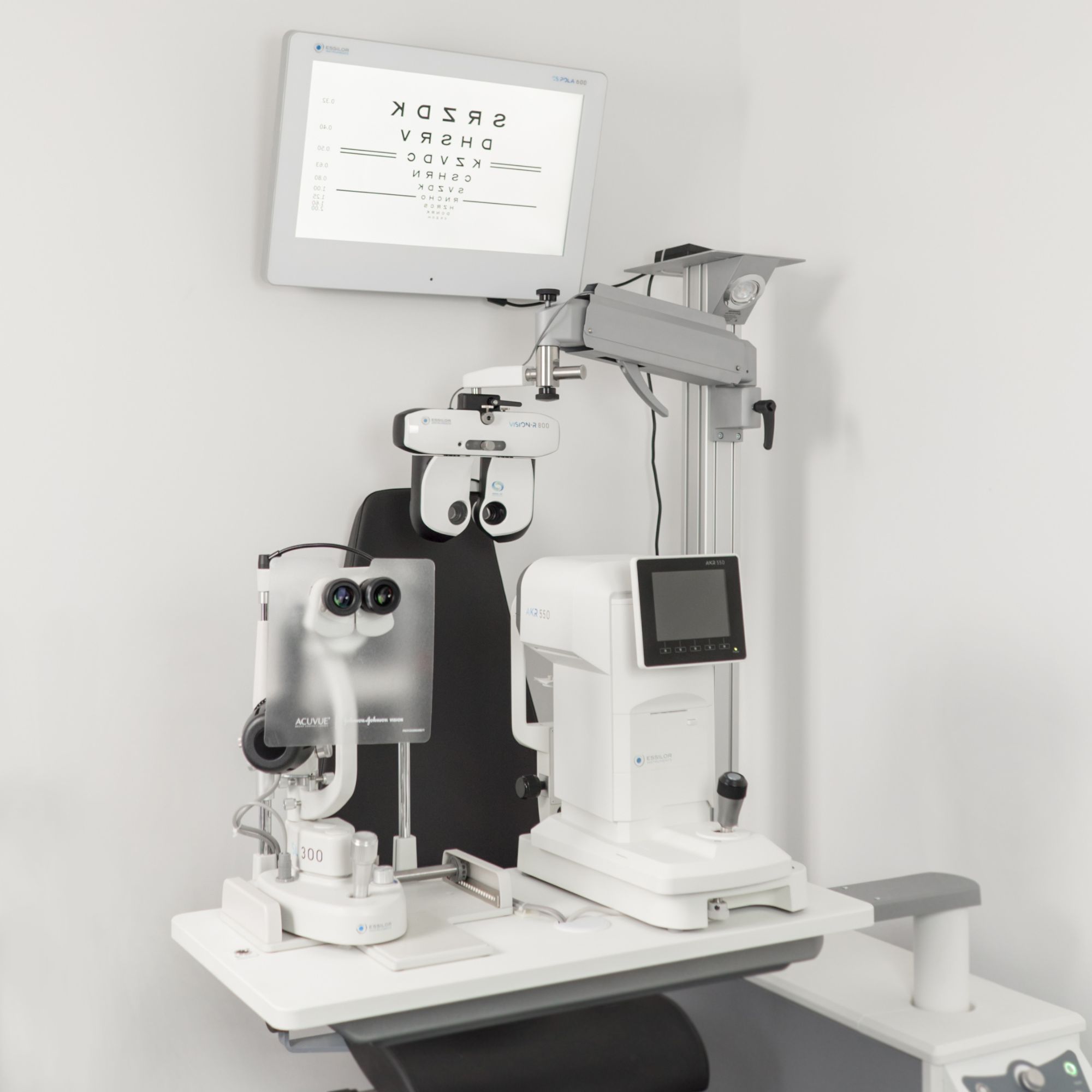 EQUIPMENT - Our clinic is equipped with state-of-the-art equipment (regularly upgraded and serviced) from the leading manufacturer, the French company ESSILOR, which significantly supports the work of our specialists. Features such as seamless lens power adjustments, the ability to determine vision correction with an accuracy of 0.01 diopters, and eye parameter measurements in 3D technology are just a few of the functions that make our eye exams highly precise and extremely comfortable.